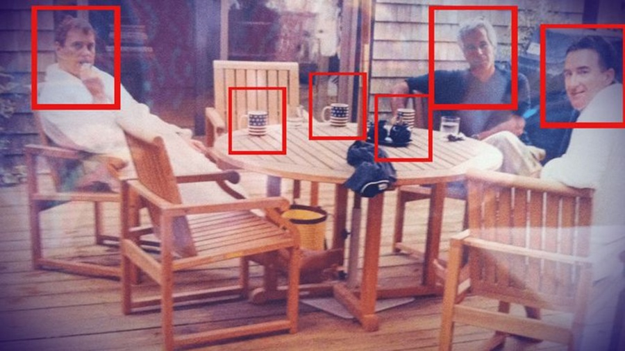 Πρόκειται για την πρώτη φωτογραφία στην οποία εμφανίζονται και οι τρεις άνδρες μαζί και δημοσιοποιήθηκε στο πλαίσιο των «αρχείων Έπσταϊν» από το υπουργείο Δικαιοσύνης των ΗΠΑ.