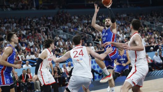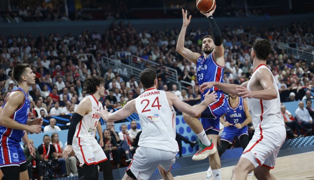 Σε ένα συναρπαστικό ματς στη Ρίγα της Λετονίας, η Τουρκία νίκησε 95-90 τη Σερβία και εξασφάλισε την πρώτη θέση του 1ου ομίλου του Ευρωμπάσκετ. Με «καταιγισμό» από τρίποντα, η ομάδα του Εργκίν Αταμάν έφτασε στην επικράτηση καθώς ευστόχησε 18 φορές (18/31) έξω από τα 6,75 και απείλησε το ιστορικό ρεκόρ των περισσότερων εύστοχων τριπόντων (19 η Γερμανία από το 2022) στα χρονικά της διοργάνωσης. Έτσι, στη φάση των «16» η Τουρκία θα έχει θεωρητικά εύκολο έργο απέναντι στη Σουηδία, ενώ η Σερβία διασταυρώνεται με τη Φινλανδία.