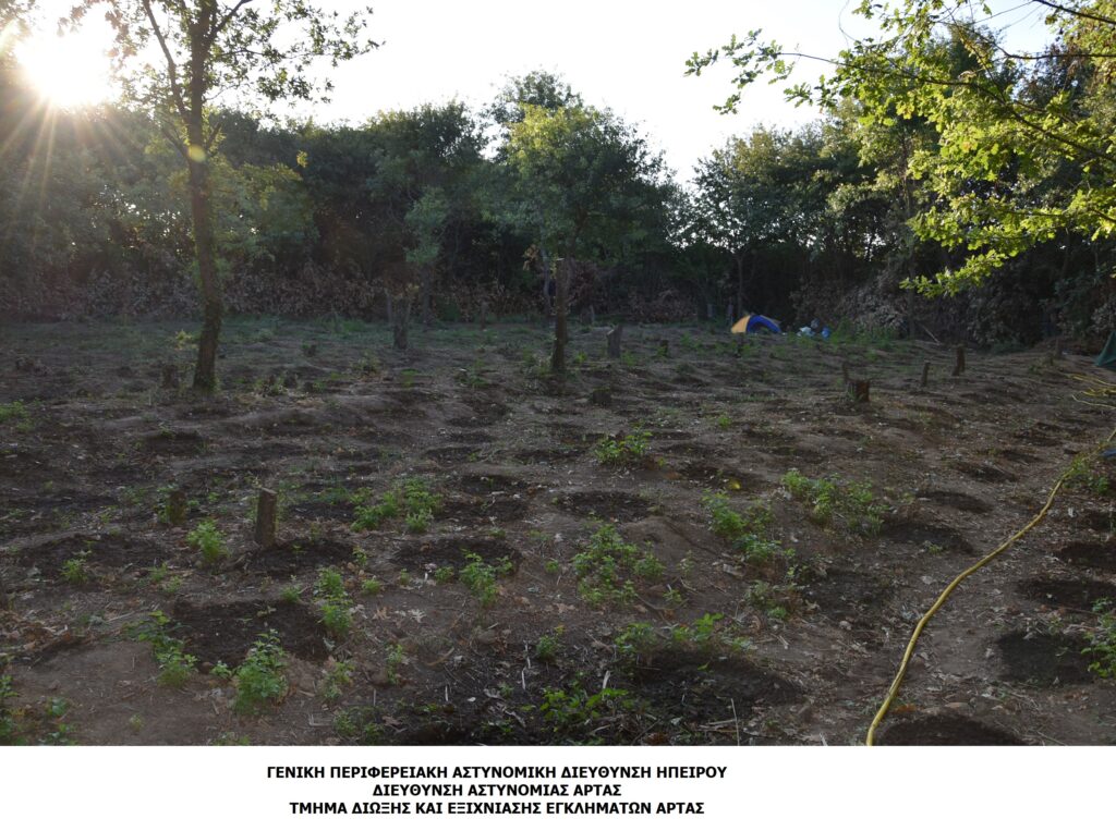 Ειδικότερα, οι αστυνομικοί, αξιοποιώντας κατάλληλα πληροφορίες, εντόπισαν σε αγροτική περιοχή της Άρτας εκχερσωμένη έκταση, περιβαλλόμενη από πυκνή και άγρια βλάστηση, όπου διαπιστώθηκε καλλιέργεια δενδρυλλίων κάνναβης. Στο πλαίσιο οργανωμένης αστυνομικής επιχείρησης σήμερα (11-07-2025) νωρίς το πρωί, συνελήφθησαν στον παραπάνω χώρο δύο αλλοδαποί, που ήταν επιφορτισμένοι με τη φροντίδα της φυτείας. Ακολούθως, συνελήφθησαν στα σπίτια τους, αλλοδαπός και ημεδαπός, οι οποίοι όπως προέκυψε από την προανάκριση είχαν τον ηγετικό ρόλο της οργάνωσης.