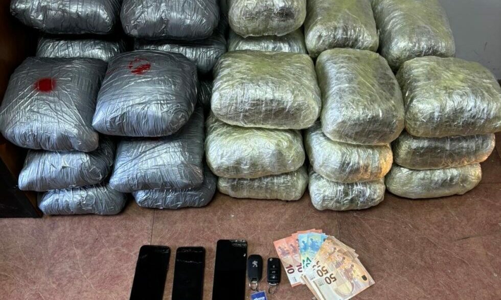 Στον έλεγχο που επακολούθησε, βρέθηκαν στο ένα από τα αυτοκίνητα και κατασχέθηκαν 34 συσκευασίες με ακατέργαστη κάνναβη, συνολικού βάρους 38 κιλών και 550 γραμμαρίων και προχώρησαν στη σύλληψη του οδηγού, παρά τη σθεναρή αντίσταση που εκείνος πρόβαλε.