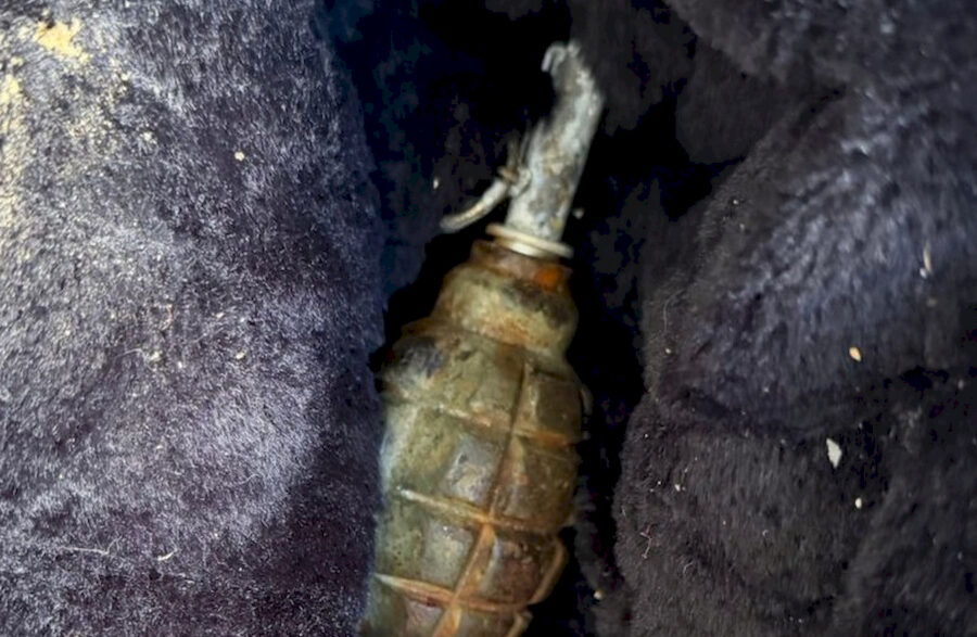 αμυντική χειροβομβίδα, επιμελώς κρυμμένη στο μπαλκόνι διαμερίσματος,