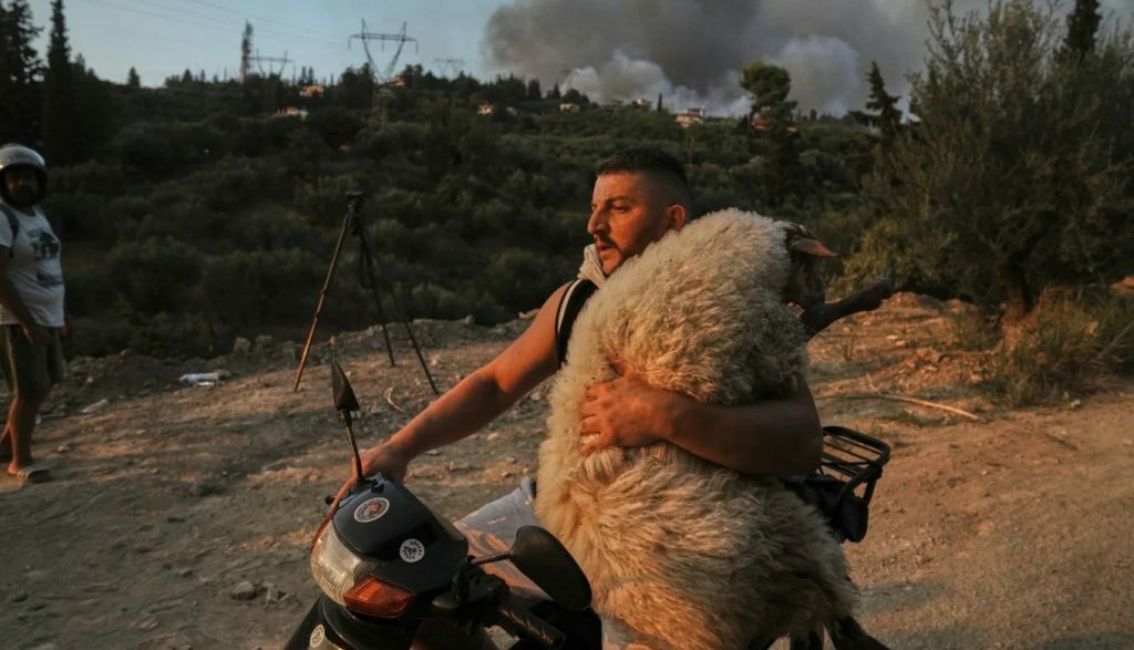 Το πρόβατο που διασώθηκε από τη φωτιά στην Πάτρα, στην αγκαλιά ενός νεαρού που το μετέφερε με το μηχανάκι, βρίσκεται πια σε φάρμα vegan. Το όνομά του, Μέλπω.