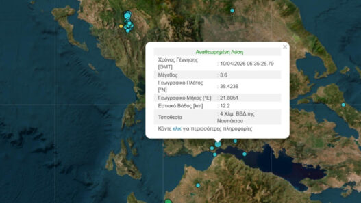 Ασθενής σεισμός έγινε αισθητός, περίπου στις 8:40 σήμερα το πρωί, Μ. Παρασκευή, στην Ναύπακτο, στο Αντίρριο, στην Πάτρα και σε άλλες περιοχές της Αιτωλοακαρνανίας και της Αχαΐας.
