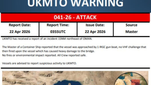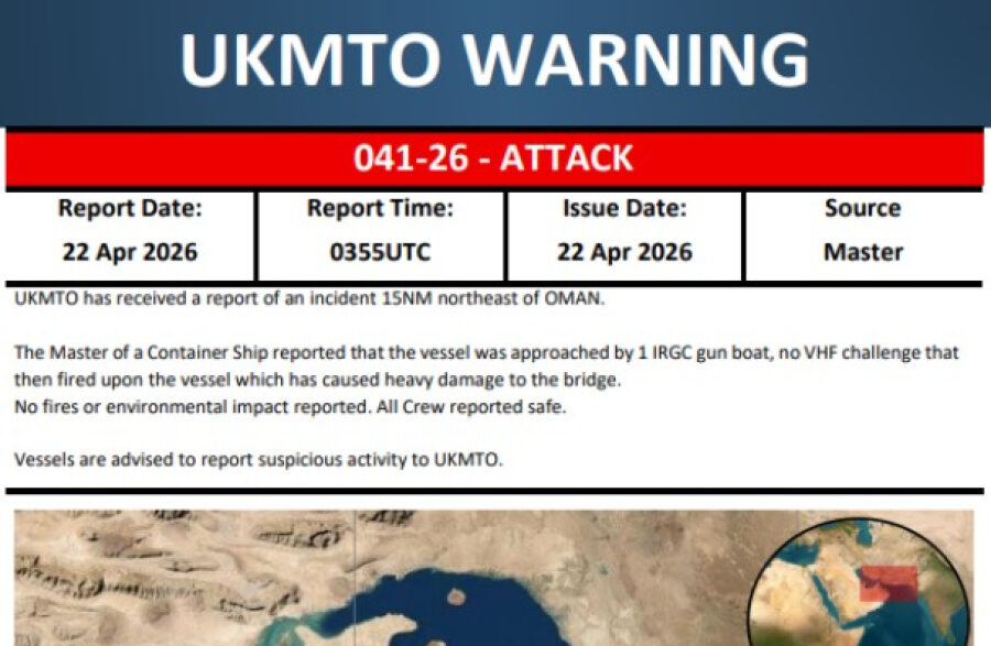 Η βρετανική υπηρεσία ασφάλειας των θαλάσσιων μεταφορών UKMTO, η οποία υπάγεται στο βρετανικό υπουργείο Άμυνας, ανακοίνωσε σήμερα ότι έλαβε πληροφορίες για «συμβάν» 15 ναυτικά μίλια (σχεδόν 28 χιλιόμετρα) βορειοδυτικά από τις ακτές του σουλτανάτου του Ομάν, με τον κυβερνήτη πλοίου μεταφοράς εμπορευματοκιβωτίων – δεν διευκρινίζεται η σημαία του, ούτε σε ποια χώρα ανήκει – να αναφέρει πως περιπολικό των Φρουρών της Επανάστασης, του ιδεολογικού στρατού της Ισλαμικής Δημοκρατίας του Ιράν, άνοιξε πυρ προκαλώντας «σοβαρές» ζημιές στη γέφυρα, χωρίς να προηγηθεί προειδοποίηση μέσω ασυρμάτου.