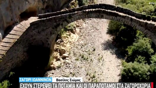 Η εικόνα στα Ζαγοροχώρια αλλάζει δραματικά. Ποτάμια που κάποτε κατέβαιναν ορμητικά ανάμεσα στα πέτρινα γεφύρια και τις πλαγιές της Πίνδου, σήμερα στέκονται ξερά, χωρίς σταγόνα νερού. Στους Κήπους, το τρίτοξο γεφύρι του Κοκκόρου, και στους Μύλους, το γνωστό γεφύρι, μαρτυρούν τη σιωπηλή απουσία του υγρού στοιχείου.